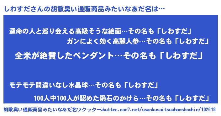 | 意味不明あだ名 | 『とにかく怪しいしわすだ』 |
