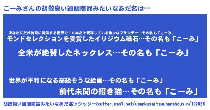 | 意味不明あだ名 | 『とにかく怪しいこーみ』 |