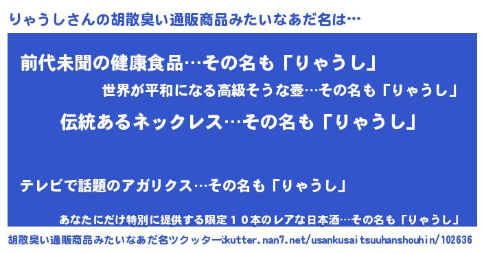 | 欧米人風あだ名 | 『ウサインりゃうし』 |