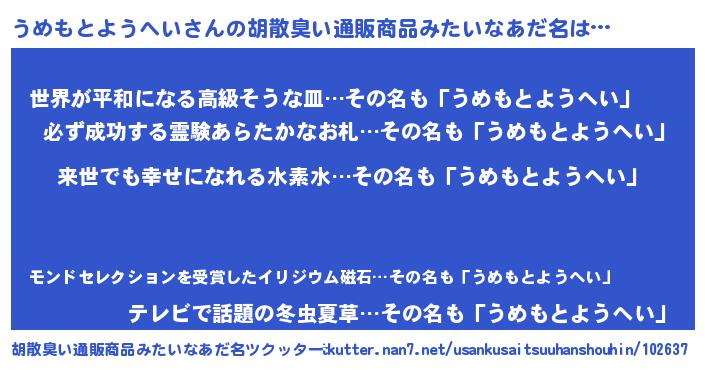 | 意味不明あだ名 | 『永久保存うめもとようへい』 |