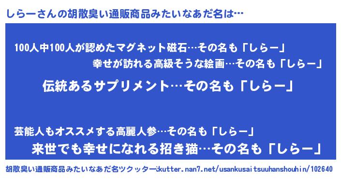 | 意味不明あだ名 | 『とにかく怪しいしらー』 |