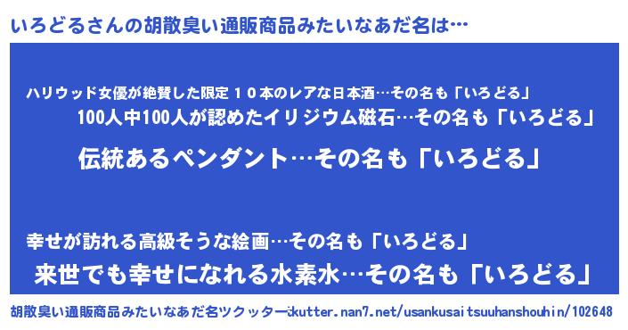 | ヘコむあだ名 | 『いろぷりん』『いろどる(小並感)』 |