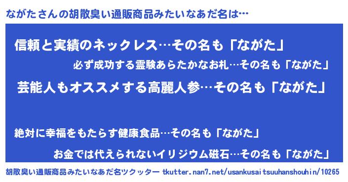 | 意味不明あだ名 | 『自称ながた』『とにかく怪しいながた』 |