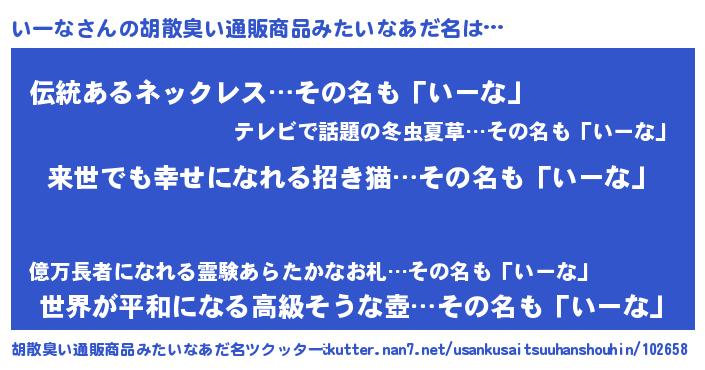 | ヘコむあだ名 | 『いーな(小並感)』『いー太郎』 |