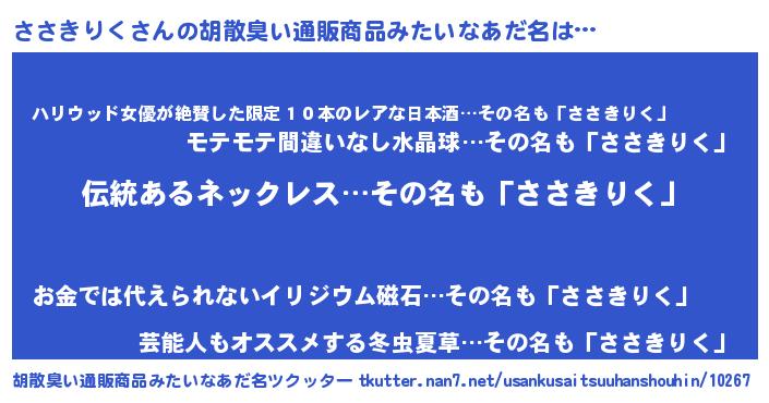 | ヘコむあだ名 | 『ささっ子』『ささにゅー』 |