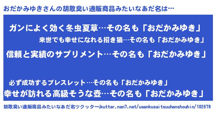 | 意味不明あだ名 | 『とにかく怪しいおだかみゆき』 |
