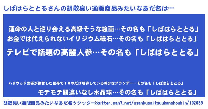 | 意味不明あだ名 | 『自称しばはらととる』 |