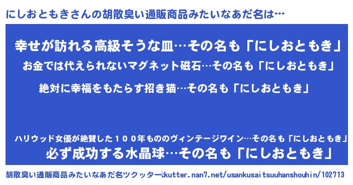 | 肩書あだ名 | 『にしおともき教頭』『にしおともき店長』 |
