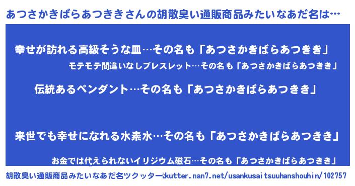 | 欧米人風あだ名 | 『ウサインあつさかきばらあつきき』 |