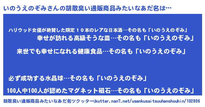 いのうえのぞみさんの胡散臭い通販商品みたいなあだ名をツクッター!