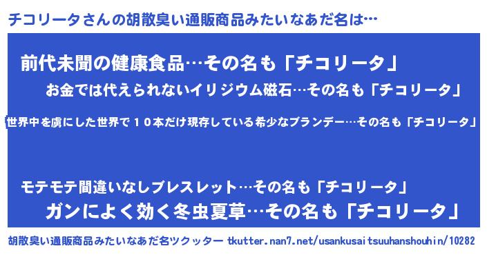 | ヒーロー風カッコイイあだ名 | 『仮面チコダー』『ネオチコリータ』 |