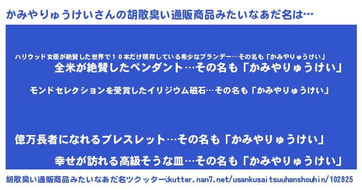 | 伝説のあだ名 | 『救世主となる占い師かみやりゅうけい』 |