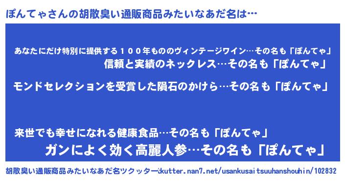 | 意味不明あだ名 | 『ニラ科ぽんてゃ属』『自称ぽんてゃ』 |