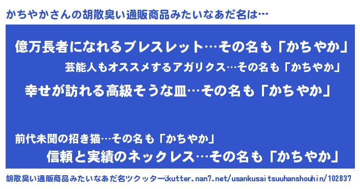| 意味不明あだ名 | 『かちやかフォーエバー』『自称かちやか』 |