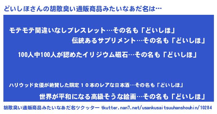 | ヘコむあだ名 | 『どいにゅー』『豆乳』『どい太郎』 |