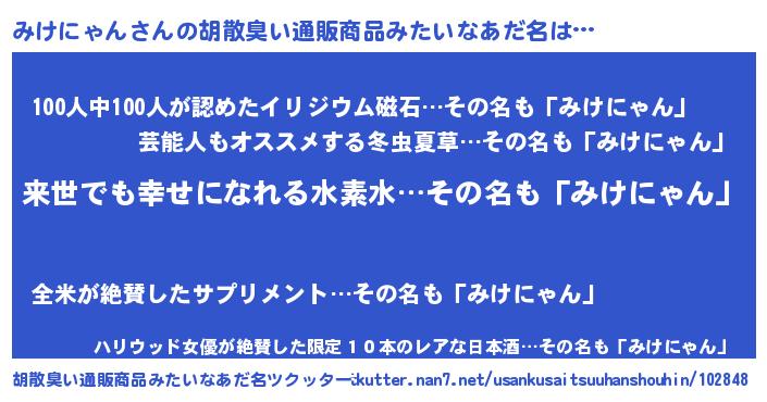 | 意味不明あだ名 | 『永久保存みけにゃん』『自称みけにゃん』 |