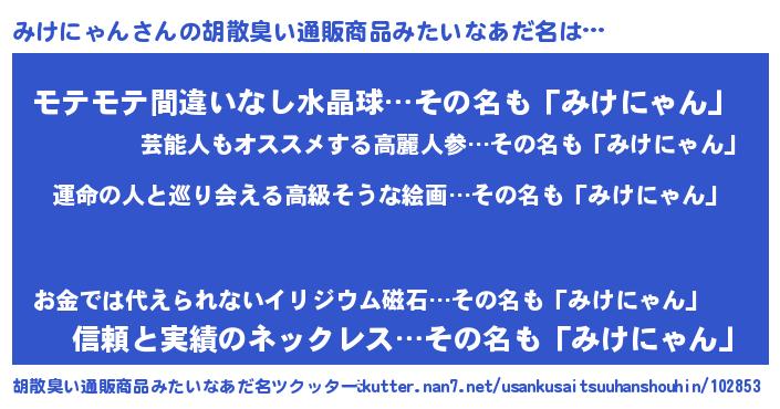 | 意味不明あだ名 | 『みけにゃんフォーエバー』 |