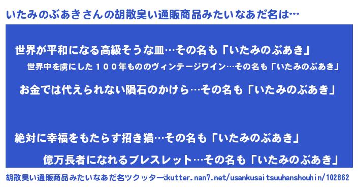 | 男性向けラノベタイトル風あだ名 | 『転生したらいたみのぶあきだった件』 |