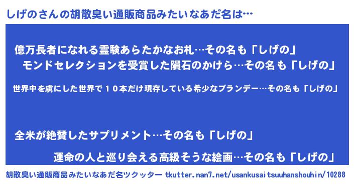 | 意味不明あだ名 | 『住所不定無職しげの(74歳)』 |