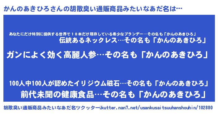 | ヘコむあだ名 | 『かんのあきひろ(笑)』『かん太郎』 |