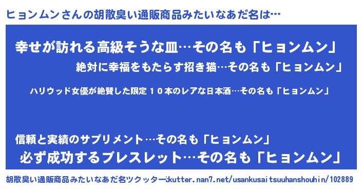 | 料理風あだ名 | 『ヒョンムンのカルパッチョ風』 |