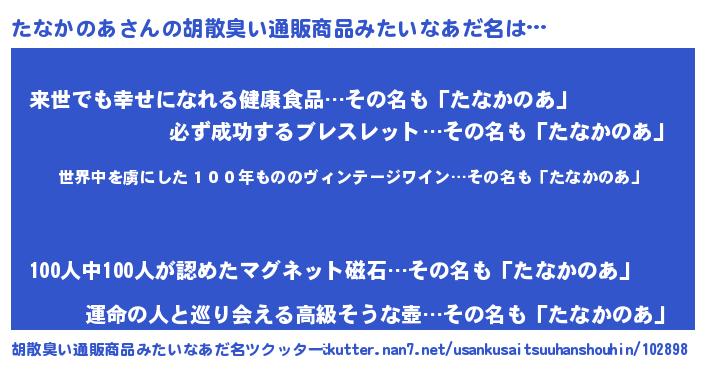 | 伝説のあだ名 | 『古より伝わる吟遊詩人たなかのあ』 |