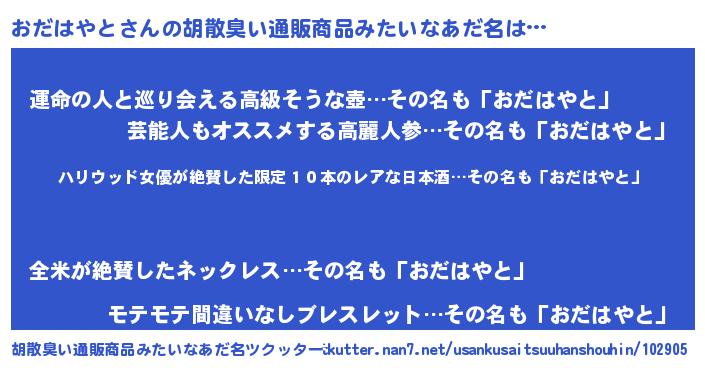 | 恥ずかしいあだ名 | 『おだっちょ』『プリティーおだはやと』 |