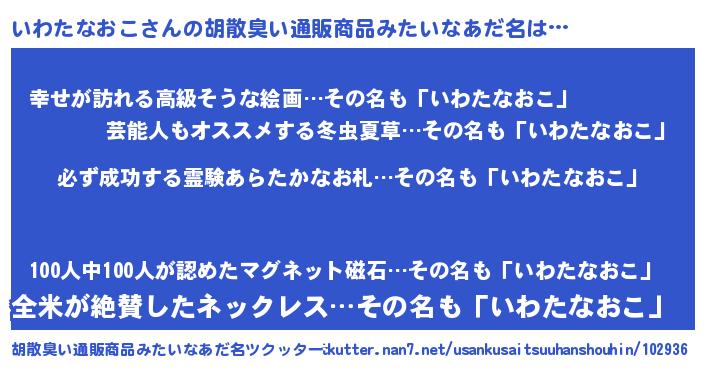 | 男性向けラノベタイトル風あだ名 | 『いわたなおこの憂鬱』 |