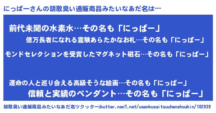 | ヒーロー風カッコイイあだ名 | 『慈愛の使者にっぱー』『ネオニッパー』 |