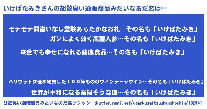 | 意味不明あだ名 | 『永久保存いけばたみき』 |