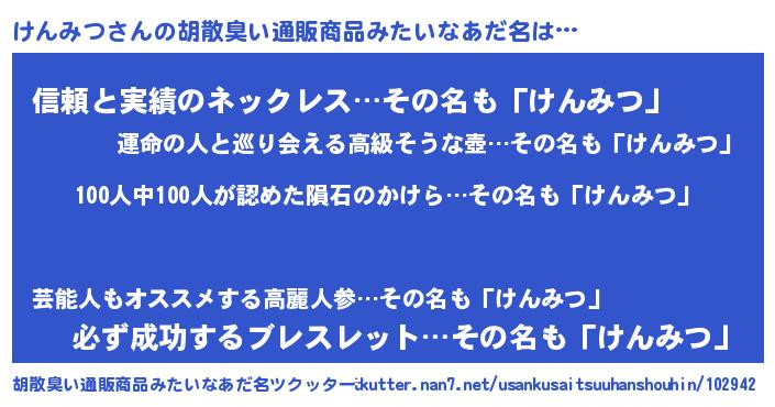 | 欧米人風あだ名 | 『ダニエルけんみつ』『ウサインけんみつ』 |