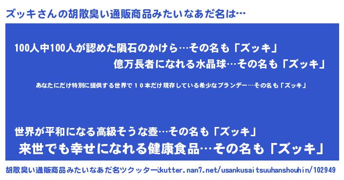 | 意味不明あだ名 | 『住所不定無職ズッキ(74歳)』 |