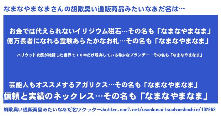 | ピコ太郎風あだ名 | 『ナナ太郎』『ナマ二郎』『ナコ史郎』 |