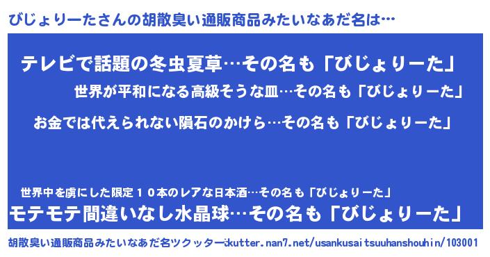 | ヒーロー風カッコイイあだ名 | 『愛の使者びじょりーた』『仮面ビジダー』 |