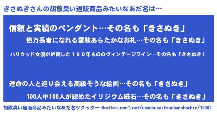 | 意味不明あだ名 | 『住所不定無職きさぬき(3歳)』 |