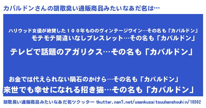 | 意味不明あだ名 | 『自称カバルドン』『永久保存カバルドン』 |