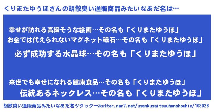 | 恥ずかしいあだ名 | 『プリティーくりまたゆうほ』『くりちん』 |