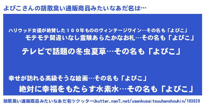 | 欧米人風あだ名 | 『ケンブリッジよぴこ』『マイケルよぴこ』 |