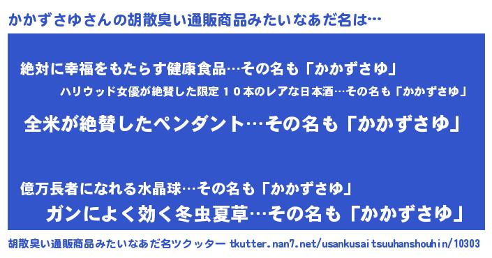 | ヘコむあだ名 | 『かかぷりん』『かかずさゆ(爆)』 |
