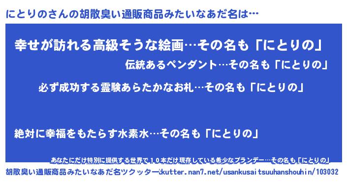 | ヒーロー風カッコイイあだ名 | 『スーパーニトリノ』『仮面ニトダー』 |
