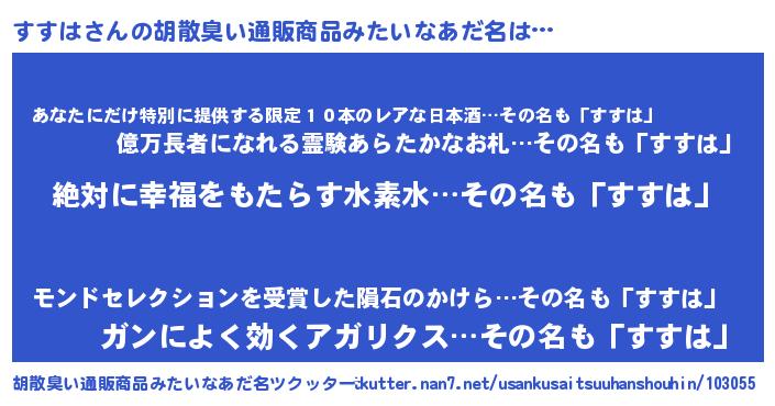 | 男性向けラノベタイトル風あだ名 | 『緋弾のススハ』『魔弾の王とすすは』 |