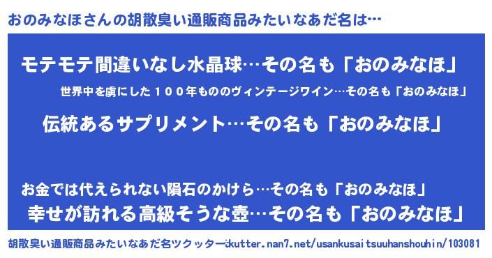 | 意味不明あだ名 | 『とにかく怪しいおのみなほ』 |