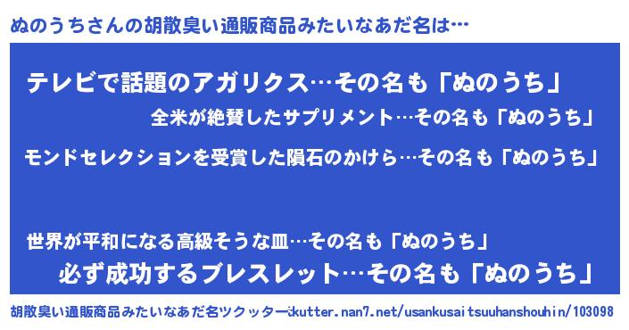 | ヒーロー風カッコイイあだ名 | 『慈愛の使者ぬのうち』『天弓騎士ヌノ』 |