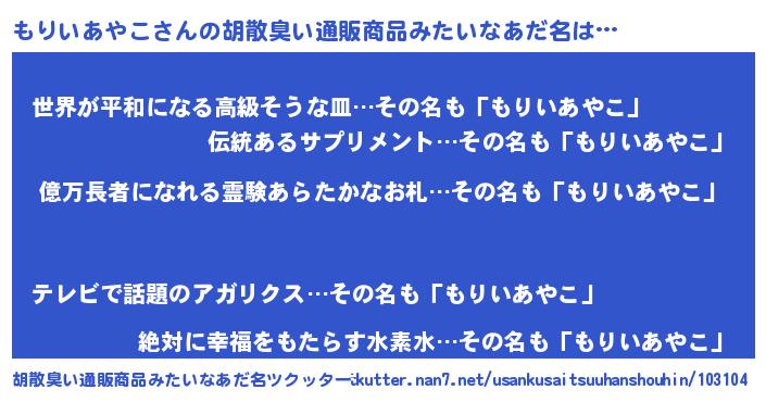 | 伝説のあだ名 | 『封印されしスナイパーもりいあやこ』 |