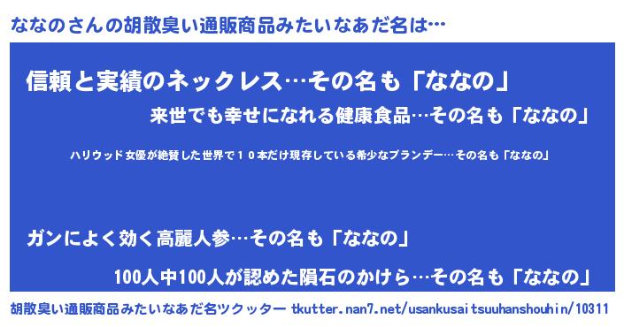 ななのさんの胡散臭い通販商品みたいなあだ名をツクッター!