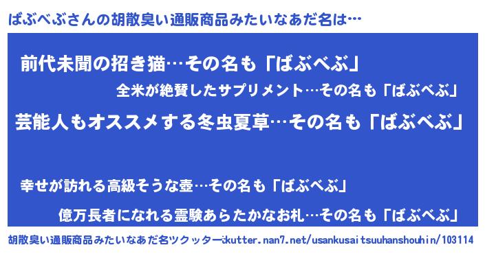 | 男性向けラノベタイトル風あだ名 | 『Re:ばぶべぶから始める異世界生活』 |