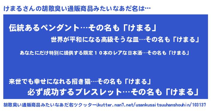 | 意味不明あだ名 | 『住所不定無職けまる(39歳)』 |