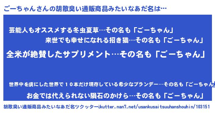 | 意味不明あだ名 | 『とにかく怪しいごーちゃん』 |