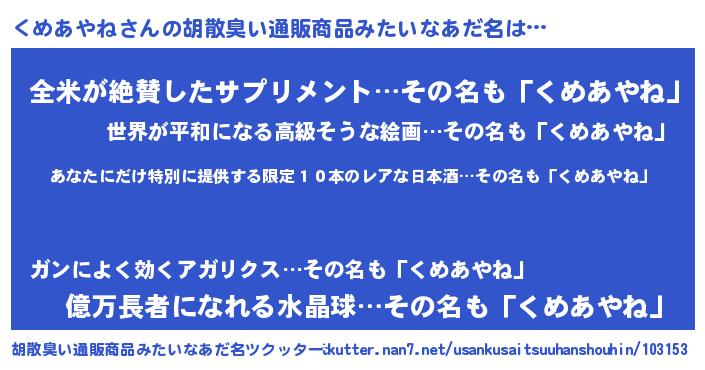 | 意味不明あだ名 | 『住所不定無職くめあやね(47歳)』 |