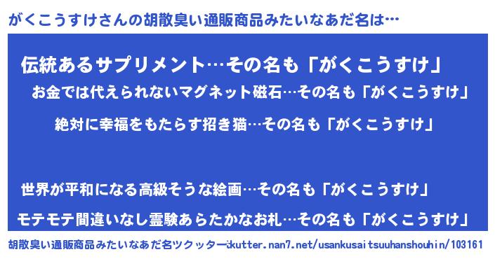 | 男性向けラノベタイトル風あだ名 | 『がくこうすけという概念が存在しない退屈な世界 』 |